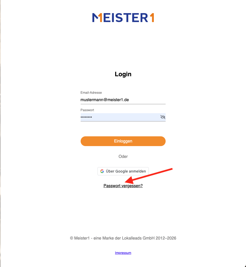 So melden Sie sich im Kundenportal an: Anmeldung Öffnen Sie die Website www.meister1.de. Klicken Sie in der Navigation oben auf „Kunden-Login“. Wählen Sie den orangenen Button „Zum Kundenportal“. Geben Sie Ihre E-Mail-Adresse und Ihr Passwort ein. ...